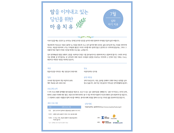 전문가와 함께하는 상담과 치유 과정을 통해 소외계층 환우에게 정서적 지지와 희망을 전하며,