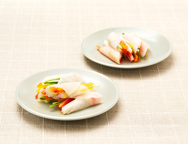기호에 따라 계란 지단, 당근 채 볶음 등을 넣어 드셔도 좋습니다. 시판되는 쌈무는 염도가 높습니다. 가정에서 직접 쌈무를 만들어 보세요