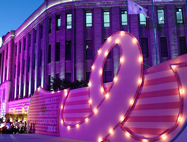 매년 10월 ‘유방암의 달’을 맞아 랜드마크 일루미네이션, 전시회, 음악회 등 다양한 활동을 전개하며 유방암 인식을 높이고 조기 발견의 중요성을 알리고 있습니다 .