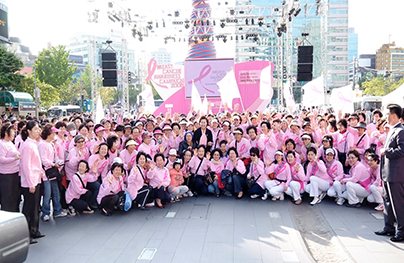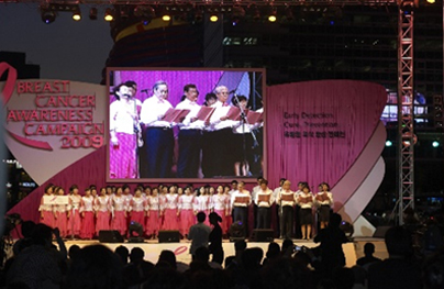 매년 10월 ‘유방암의 달’을 맞아 랜드마크 일루미네이션, 전시회, 음악회 등 다양한 활동을 전개하며 유방암 인식을 높이고 조기 발견의 중요성을 알리고 있습니다 .