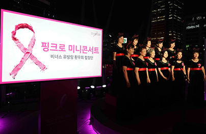 매년 10월 ‘유방암의 달’을 맞아 랜드마크 일루미네이션, 전시회, 음악회 등 다양한 활동을 전개하며 유방암 인식을 높이고 조기 발견의 중요성을 알리고 있습니다 .